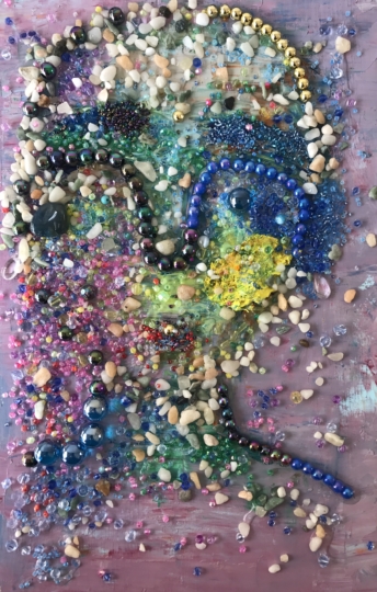 - oil and beads on wooden board