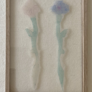 私の制作はドローイングから始まりそこから出来た形を木に転写し鋸で色々な形に切る。形は少し厚みがあり物質的になる。転写しているので反対側はドローイングした形になり両面に形ができる。それを彫刻刀で彫っていく、私にとって彫ることは手で触りながら形を確かめるような触覚的な要素が大きい。そしてそれを紙に摺るとその形はまた反転する。私は摺ることによって生まれる複数性の差異に興味がある。それらは見えない物の存在が微かに紙に残っている事があるからである。