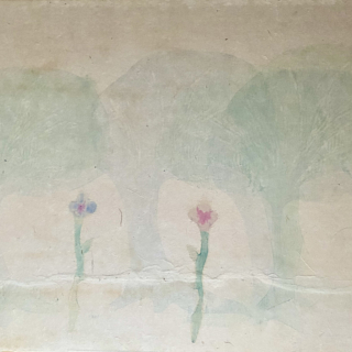 塩川の作品は、不思議なイメージと美しい構成で観る者を惹きつけます。和紙に摺られた柔らかい輪郭線のイメージは、私たちが木版画と聞いた時に連想するものとは大きく異なります。顔や体、動物や植物、月や星などのモチーフを板から鋸で切り出して版木を作り、水性絵具をのせてプレス機やバレンで摺って絵具を和紙に染み込ませていく手法は、日本の伝統的な水性木版画の技法を基礎としつつ、塩川が自身に最も合う表現方法を求める中で編み出した独自のものです。また、摺ったイメージを裏打ちや水切りの技法を用いて切り取り、再構成してコラージュ作品も制作しています。木版画という枠にとらわれない絵画性の高い作品の数々をご高覧下さい。
