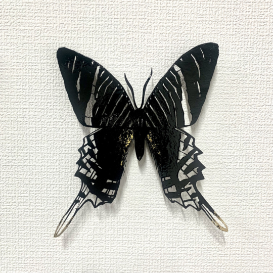 - cut-card, synthetic lacquer, gold leaf, silver leaf