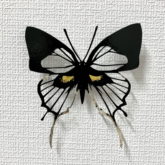 - cut-card, synthetic lacquer, gold leaf, silver leaf